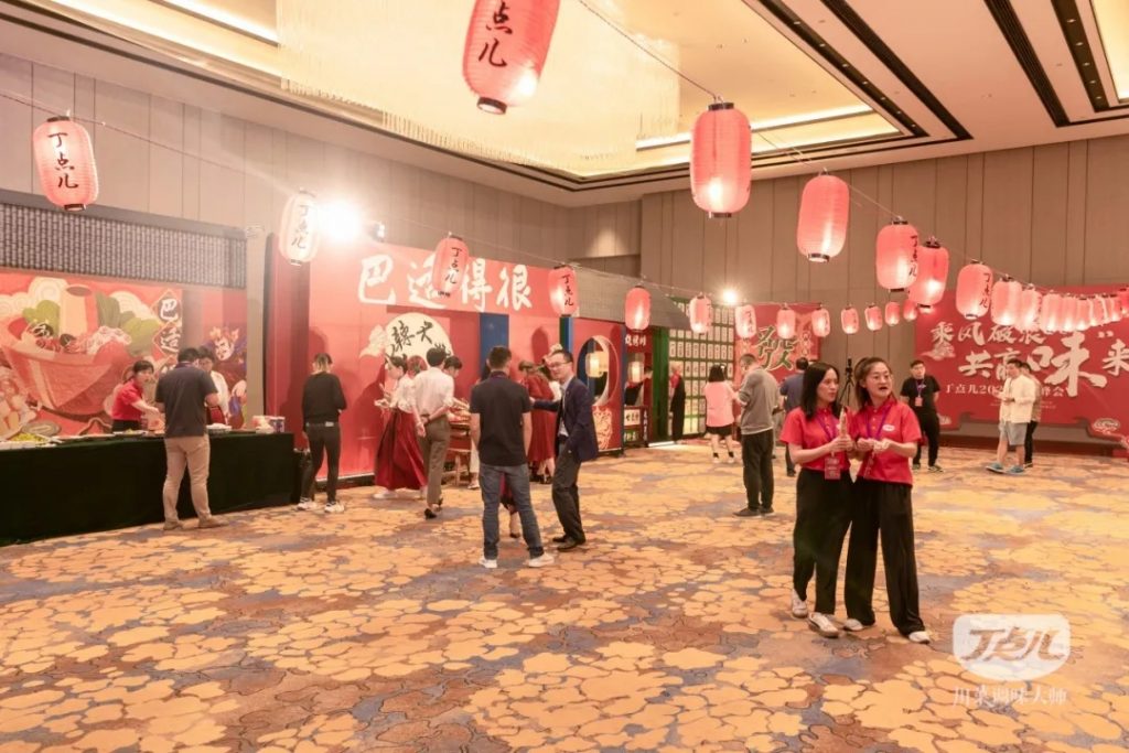 會(huì)場(chǎng)以丁點(diǎn)兒國(guó)風(fēng)紅為主題色,將丁點(diǎn)兒品牌和傳統(tǒng)的國(guó)風(fēng)相結(jié)合,以特色國(guó)潮風(fēng),通過搭建一條傳統(tǒng)美食街的新穎方式,展示丁點(diǎn)兒的川味和川派文化,同時(shí)賦能此次大會(huì)的傳播,為未能到場(chǎng)的經(jīng)銷商伙伴提供一場(chǎng)身臨其境的饕餮盛宴。