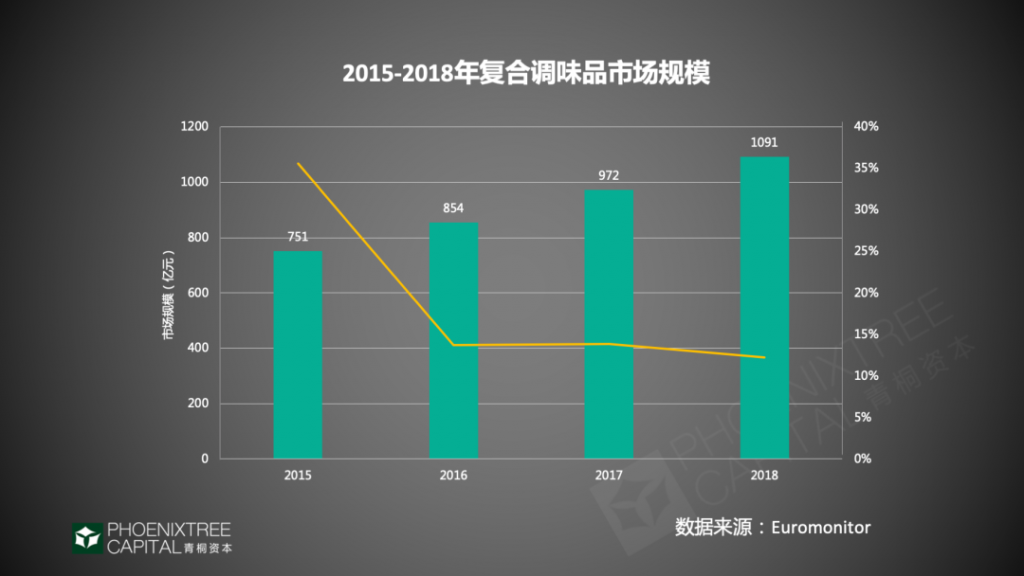 復(fù)合調(diào)味品市場(chǎng)集中度低,增速較快,極具成長性,據(jù)Euromonitor,2018年我國復(fù)合調(diào)味品市場(chǎng)規(guī)模為1091億元,2013-2018年復(fù)合增速高達(dá)14.4%,預(yù)計(jì)2020年將達(dá)1488億元。作為創(chuàng)業(yè)公司集中的賽道,火鍋調(diào)味品、中式復(fù)合調(diào)味品這2大品類更具發(fā)展?jié)摿Α?/span>