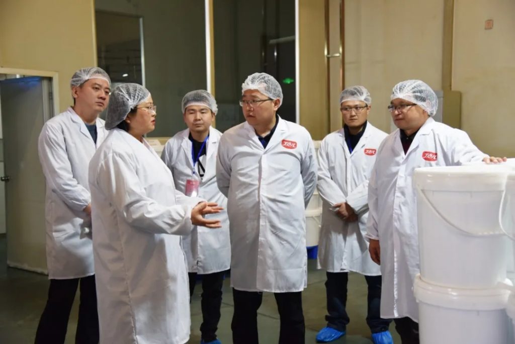 丁點兒股份張靜總經(jīng)理陪同朱副縣長一行領(lǐng)導(dǎo)參觀加工車間