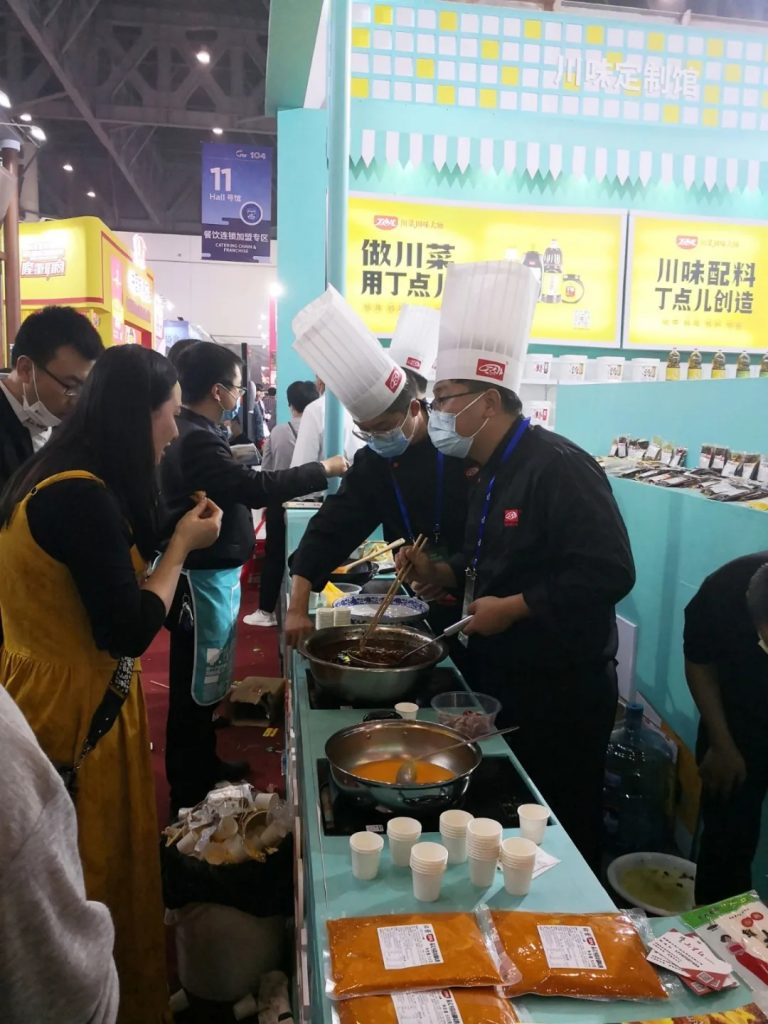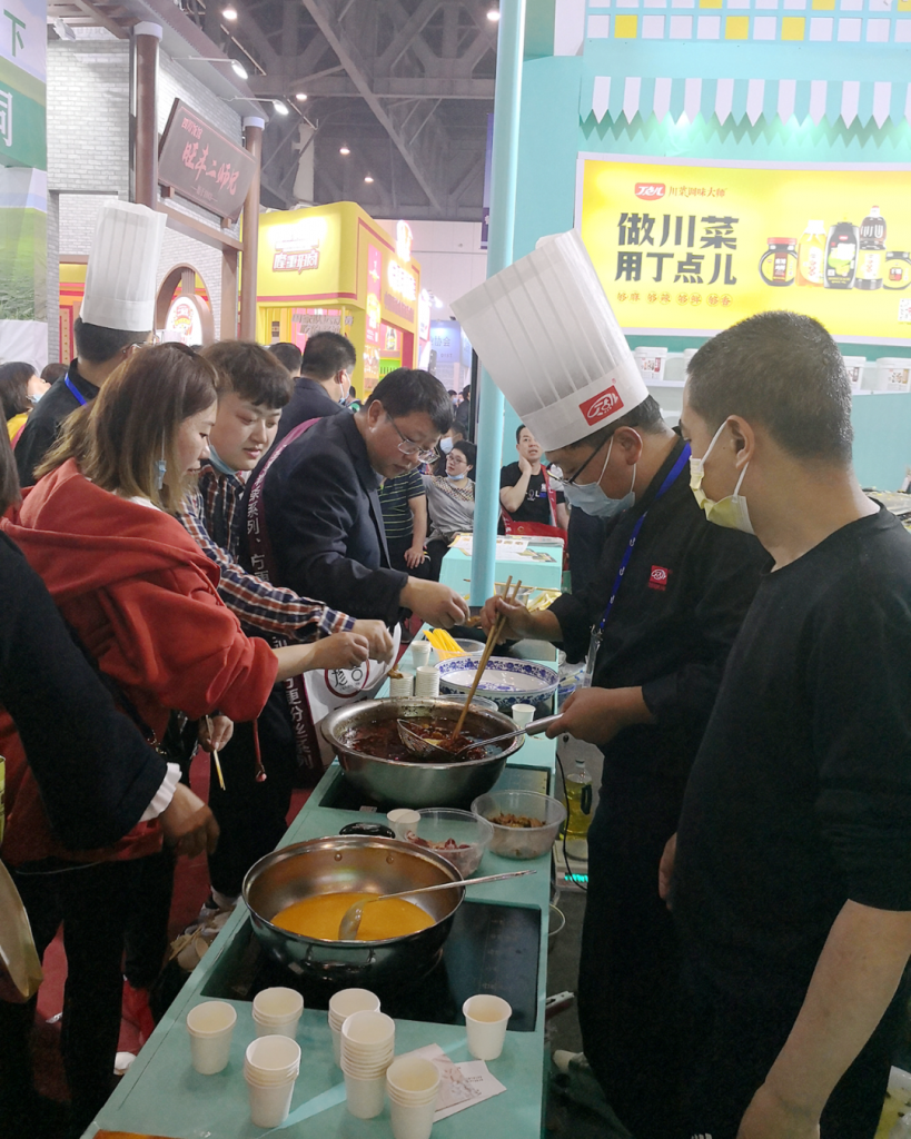 ? ? ?四川丁點(diǎn)兒股份針對流通、餐飲定制和家庭廚房調(diào)味料,現(xiàn)場產(chǎn)品展示突出搶眼、菜品應(yīng)用色香味型俱全。干鍋醬、椒麻雞汁、老壇酸菜魚、金湯酸辣醬、川味辣鹵汁、麻辣(蒜香)小龍蝦、油醋汁、姬松茸菌湯等經(jīng)典川菜調(diào)料明星產(chǎn)品隆重亮相,吸引了大批參會者前來品嘗并達(dá)成合作意向。
