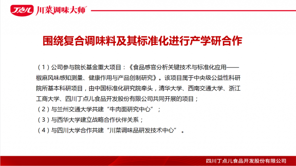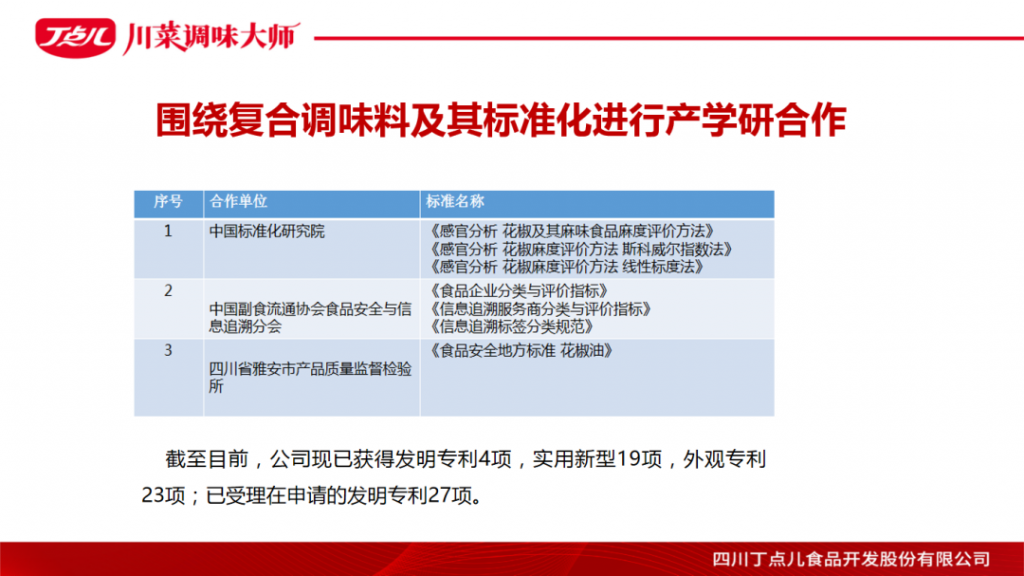 ? ? ? 以“豐富生活點(diǎn)點(diǎn)滋味”為理念,丁點(diǎn)兒股份致力于推動(dòng)川菜調(diào)味標(biāo)準(zhǔn)化、川菜菜品工業(yè)化的發(fā)展,為餐飲客戶提供安全、便捷的調(diào)味標(biāo)準(zhǔn)化產(chǎn)品,簡(jiǎn)化川菜烹飪流程,讓川菜烹調(diào)變簡(jiǎn)單!