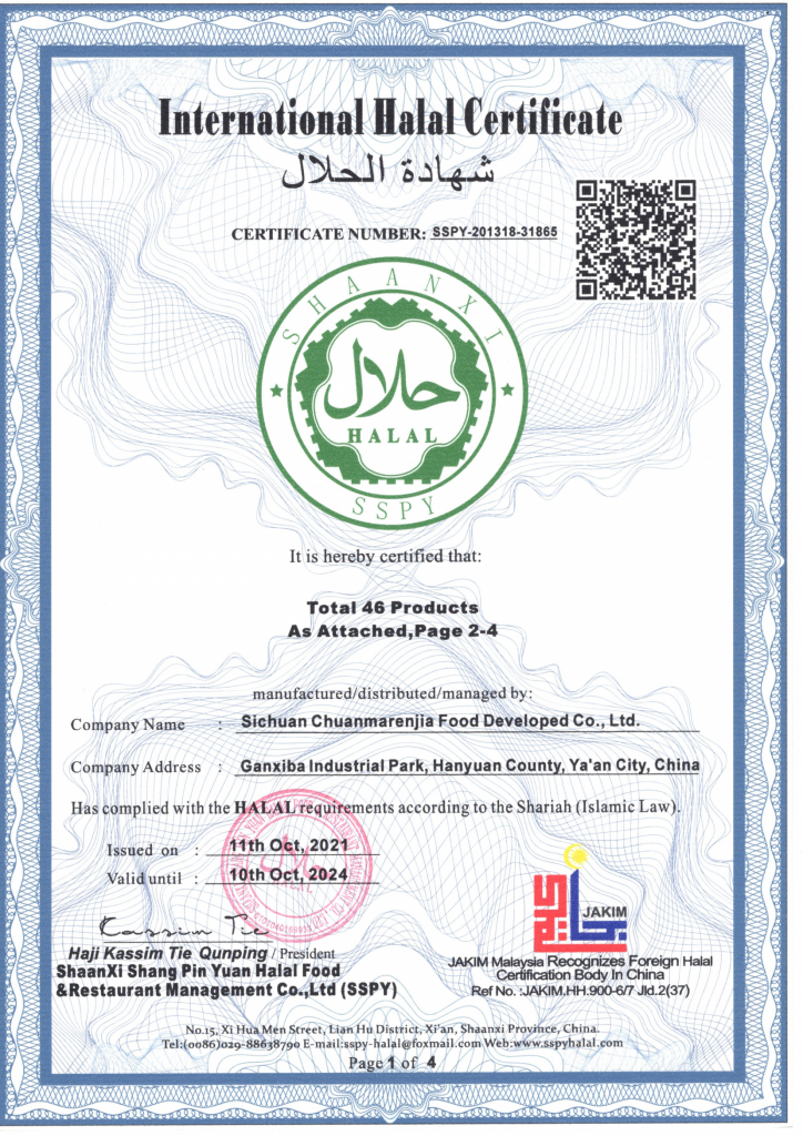 ? ? ? ?清真認(rèn)證,即符合穆斯林生活習(xí)慣和需求的食品、藥品、化妝品以及食品、藥品、化妝品添加劑。為響應(yīng)國(guó)家“一帶一路”倡議,滿(mǎn)足沿線(xiàn)國(guó)家對(duì)清真產(chǎn)品不斷擴(kuò)大的市場(chǎng)需求,川麻人家抓住機(jī)遇,依托母公司丁點(diǎn)兒股份專(zhuān)注川菜標(biāo)準(zhǔn)化調(diào)味品22年的生產(chǎn)技術(shù)及產(chǎn)品研發(fā)優(yōu)勢(shì),專(zhuān)注于漢源花椒及清真復(fù)合調(diào)味品研發(fā)、生產(chǎn)、加工,致力于清真美食的創(chuàng)新與推廣,促進(jìn)國(guó)際清真飲食文化交流和發(fā)展。