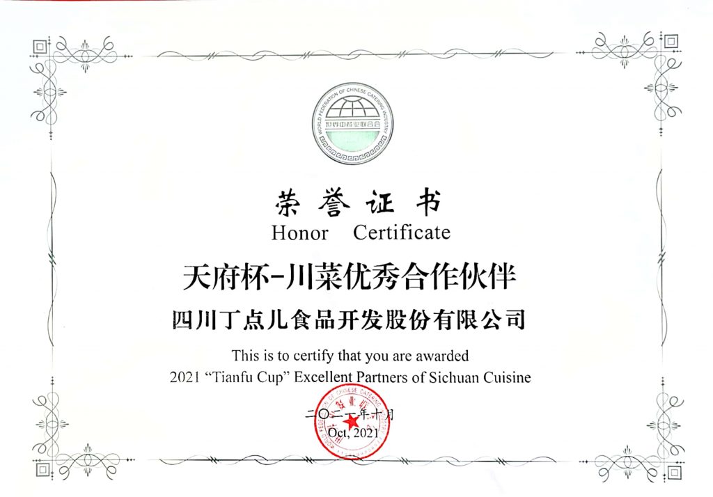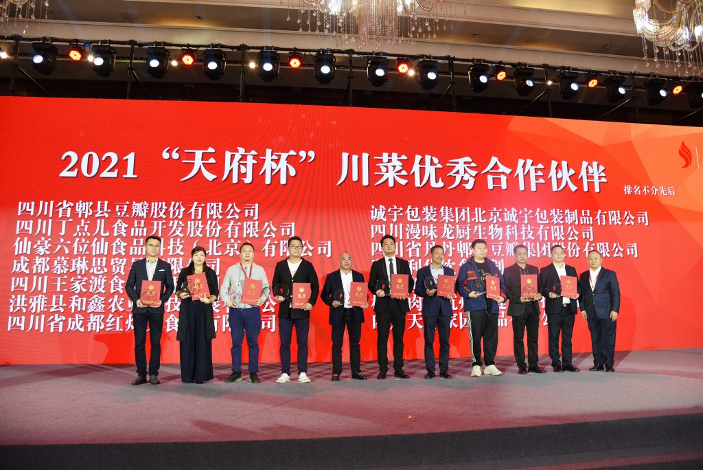 ? ? ? ?10月18-20日,由成都市郫都區(qū)人民政府、世界中餐業(yè)聯(lián)合會(huì)共同主辦的第四屆世界川菜大會(huì)在成都市郫都區(qū)隆重召開(kāi),丁點(diǎn)兒股份攜企業(yè)明星產(chǎn)品在會(huì)場(chǎng)亮相,并在2021“天府杯”世界川菜頒獎(jiǎng)大會(huì)中獲得“‘天府杯’川菜優(yōu)秀合作伙伴”稱號(hào)。