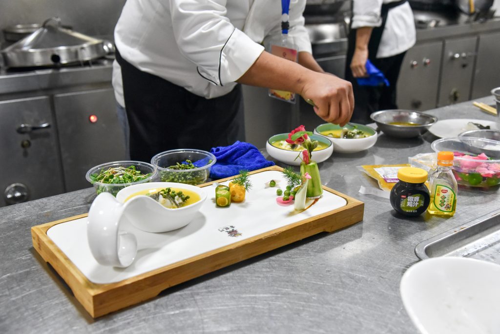 ? ? ? ?本次比賽旨在推動(dòng)傳統(tǒng)烹飪技藝的傳承與發(fā)展,加強(qiáng)企業(yè)間的溝通與交流。賽場(chǎng)上,選手們各顯神通,切絲、切片、碼味、炒制,紛紛拿出自己的看家本領(lǐng);展示區(qū),銀針絲、糖粘花仁、水煮魚(yú)等一道道已完成的菜品紛紛呈現(xiàn),引人注目。這不僅是一次比賽,更是大家切磋技藝、展示水平的舞臺(tái),競(jìng)爭(zhēng)中,大家互相學(xué)習(xí)、爭(zhēng)相進(jìn)步。