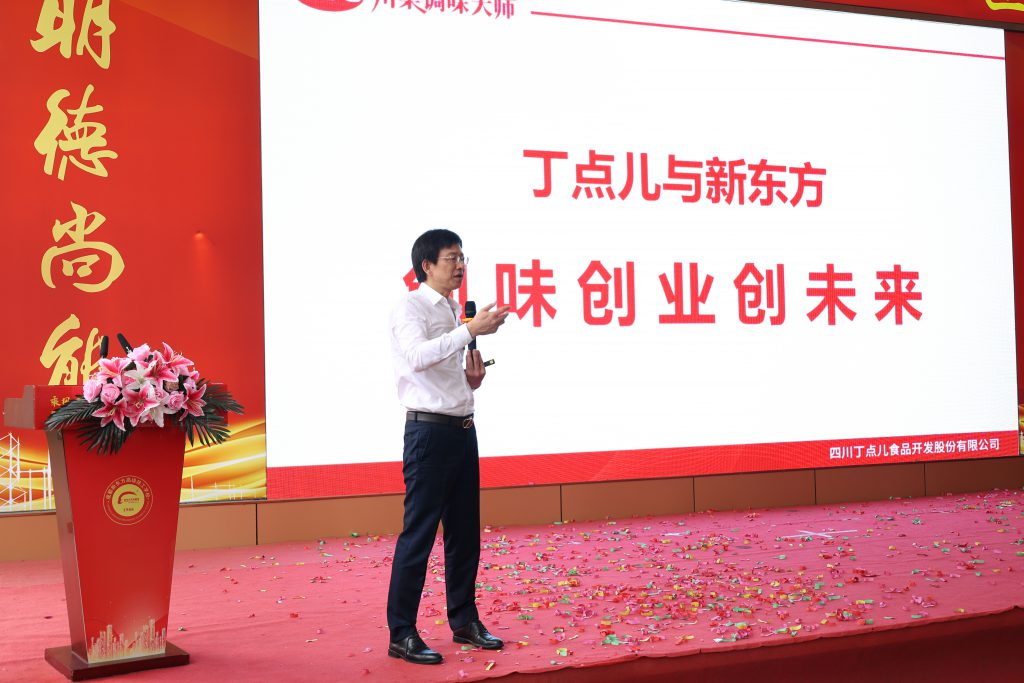 ? ? ? ? 簽約儀式后,丁點兒股份任康董事長受邀作主題演講,他在演講中提到:“同學(xué)們是未來川菜產(chǎn)業(yè)發(fā)展的踐行者,也是川菜文化的傳承者。丁點兒股份是川菜調(diào)味料行業(yè)發(fā)展的引領(lǐng)者,相信丁點兒產(chǎn)品能成為同學(xué)們烹飪技能培養(yǎng)中最值得信賴的伙伴。丁點兒股份愿意為同學(xué)們提供實習(xí)、就業(yè)和創(chuàng)業(yè)機會,愿意與新東方高級技工學(xué)校在產(chǎn)教融合發(fā)展方面加強合作,共同譜寫職業(yè)教育改革發(fā)展新篇章?!?/p>