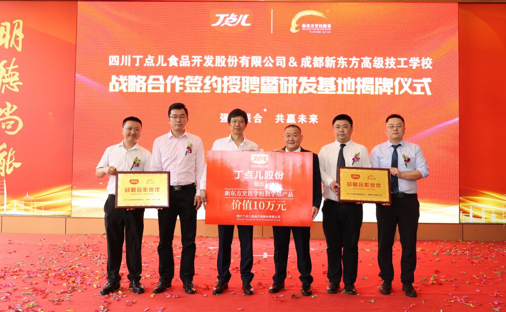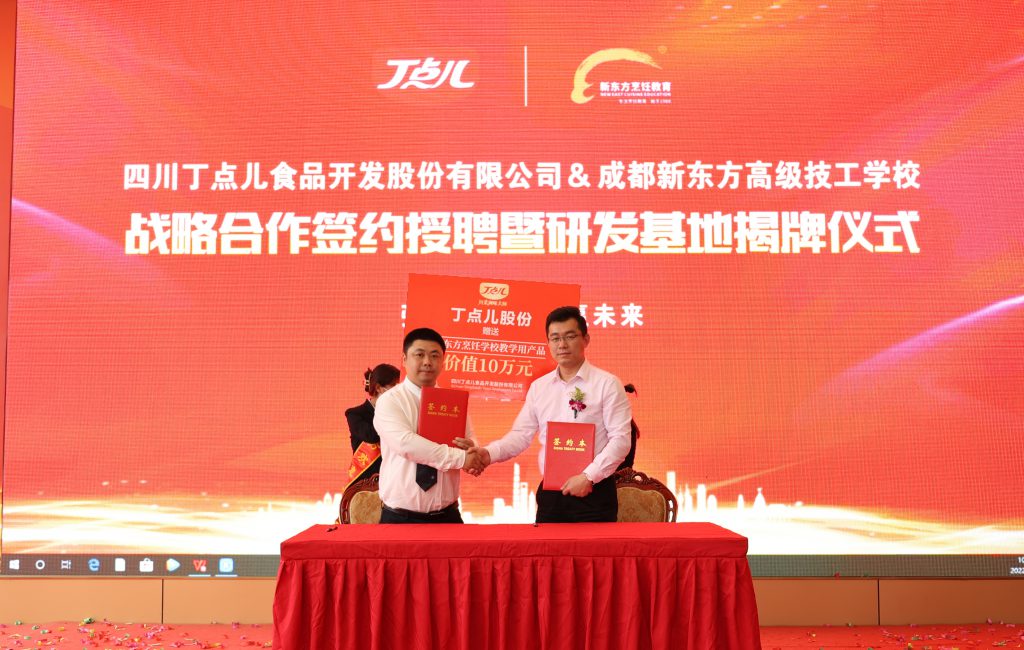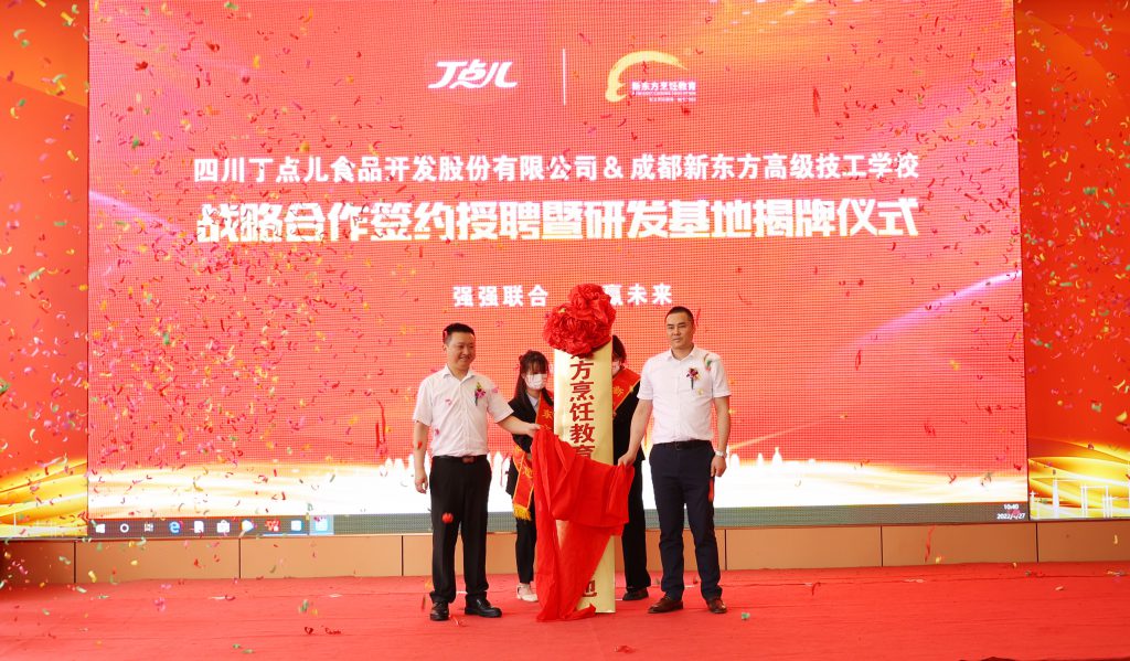 ? ? ? ? 為進一步深化產(chǎn)教融合,加強校企合作,推動人才培養(yǎng)模式變革,4月27日上午,四川丁點兒食品開發(fā)股份有限公司與成都新東方高級技工學(xué)校戰(zhàn)略合作簽約暨授聘儀式、研發(fā)基地揭牌儀式在成都新東方烹飪學(xué)校隆重舉行。