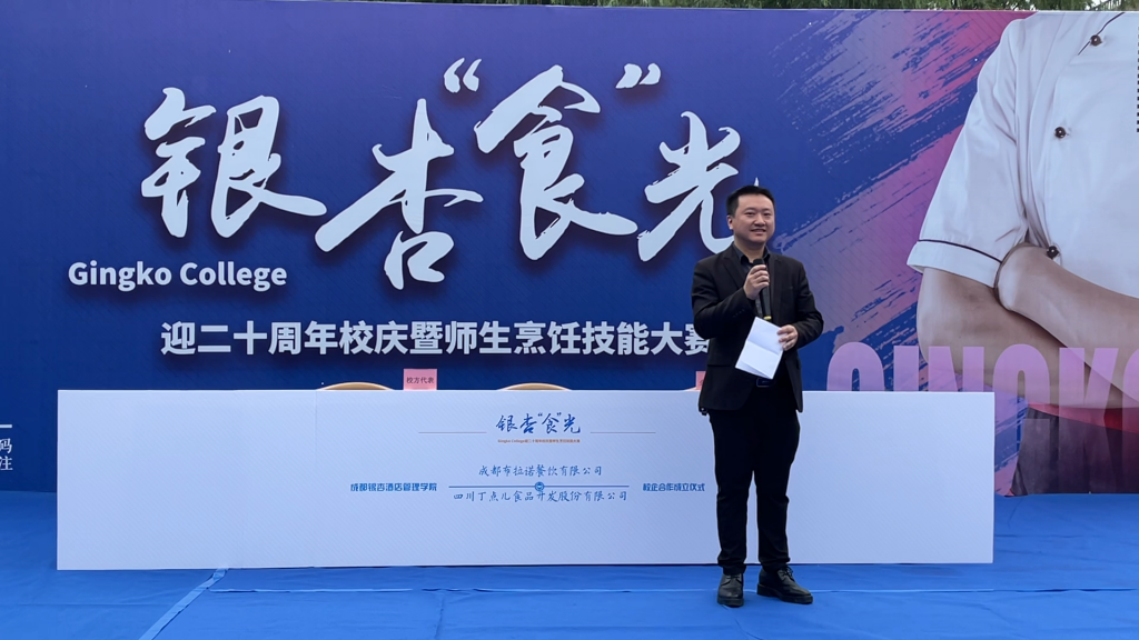 ? ? ? ?大賽開(kāi)幕式上,陳證宇代表丁點(diǎn)兒股份發(fā)言。他表示,成都銀杏酒店管理學(xué)院作為現(xiàn)代服務(wù)型企業(yè)經(jīng)營(yíng)管理人才培養(yǎng)基地,為行業(yè)培養(yǎng)了數(shù)以萬(wàn)計(jì)的人才,為經(jīng)濟(jì)社會(huì)發(fā)展作出了應(yīng)有的貢獻(xiàn);而丁點(diǎn)兒股份的企業(yè)品牌成立于1999年,作為一家集川菜標(biāo)準(zhǔn)化調(diào)味料研發(fā)、生產(chǎn)、銷(xiāo)售、服務(wù)為一體的現(xiàn)代化企業(yè),二十多年來(lái),深耕川調(diào)領(lǐng)域,致力于川菜標(biāo)準(zhǔn)化調(diào)味和川菜飲食文化研究,打造了以川味復(fù)合調(diào)味料、川味特色花椒油為主導(dǎo)的產(chǎn)品體系,是中國(guó)川菜標(biāo)準(zhǔn)化調(diào)味的標(biāo)志性符號(hào)及川菜標(biāo)準(zhǔn)化復(fù)合調(diào)味料行業(yè)引領(lǐng)者。今天雙方共同簽署校企戰(zhàn)略合作協(xié)議,形成強(qiáng)強(qiáng)聯(lián)合、資源共享、優(yōu)勢(shì)互補(bǔ)的合力,共同深化人才培養(yǎng)、產(chǎn)業(yè)發(fā)展,構(gòu)建覆蓋教學(xué)、科研、實(shí)訓(xùn)、就業(yè)的交流服務(wù)鏈條,推動(dòng)產(chǎn)業(yè)高質(zhì)量發(fā)展,為經(jīng)濟(jì)社會(huì)發(fā)展作出更多的貢獻(xiàn)。