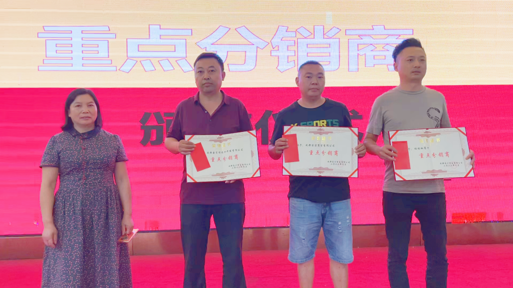 ? ? ? ?6月29日,丁點兒股份攜手成都叁川貿(mào)易有限公司共同舉辦的成都分銷商品鑒答謝會在成都郫都區(qū)繡園酒店隆重舉行!300余位分銷商朋友歡聚一堂,共話美好未來。