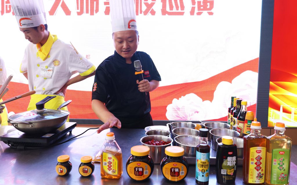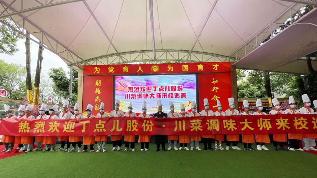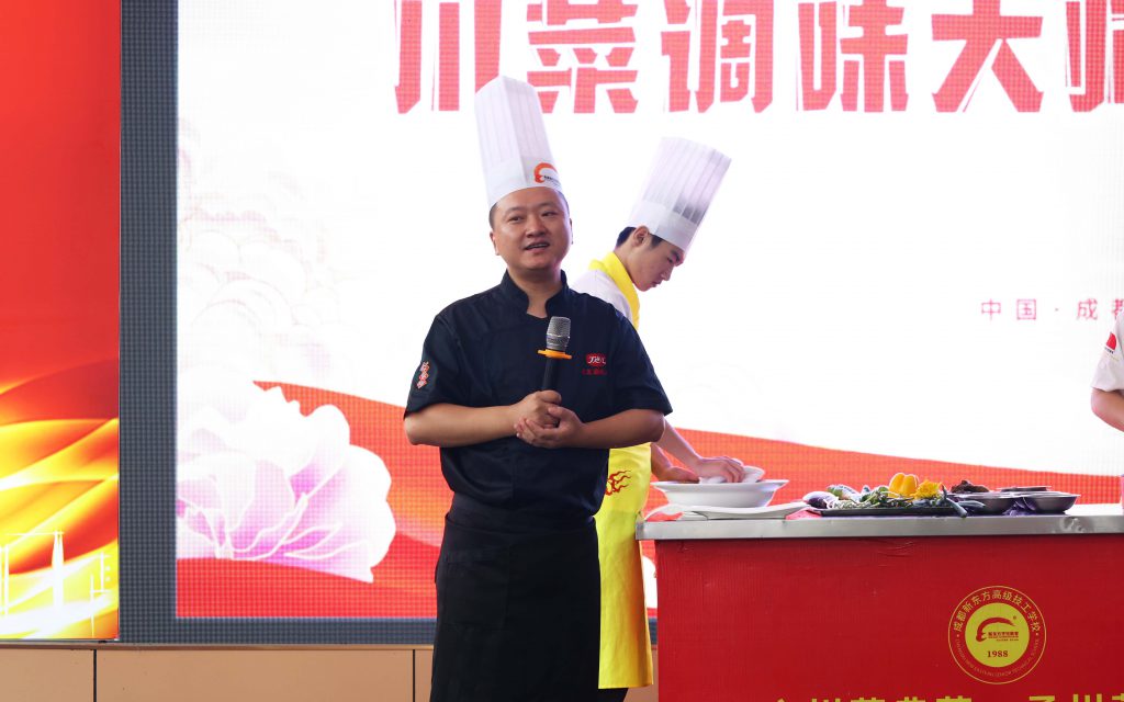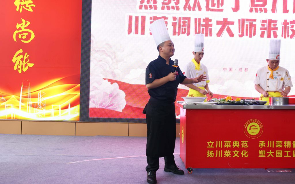? ? ? ?為扎實推進產(chǎn)教深度融合,拓寬校企合作深度,盡早讓烹飪學子感受川菜調(diào)味的魅力,切身了解企業(yè)對人才的需求標準。近日,丁點兒股份應用培訓部副部長、川菜調(diào)味大師陳證宇受邀到成都新東方高級技工學校彭鎮(zhèn)校區(qū)開展丁點兒川菜調(diào)味大師課首站巡演!