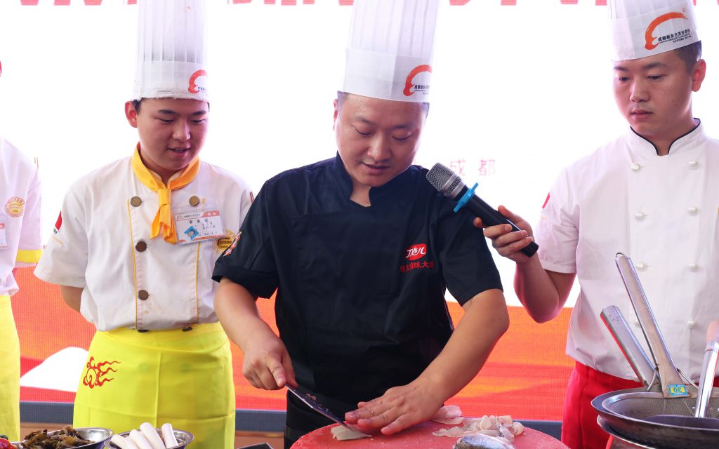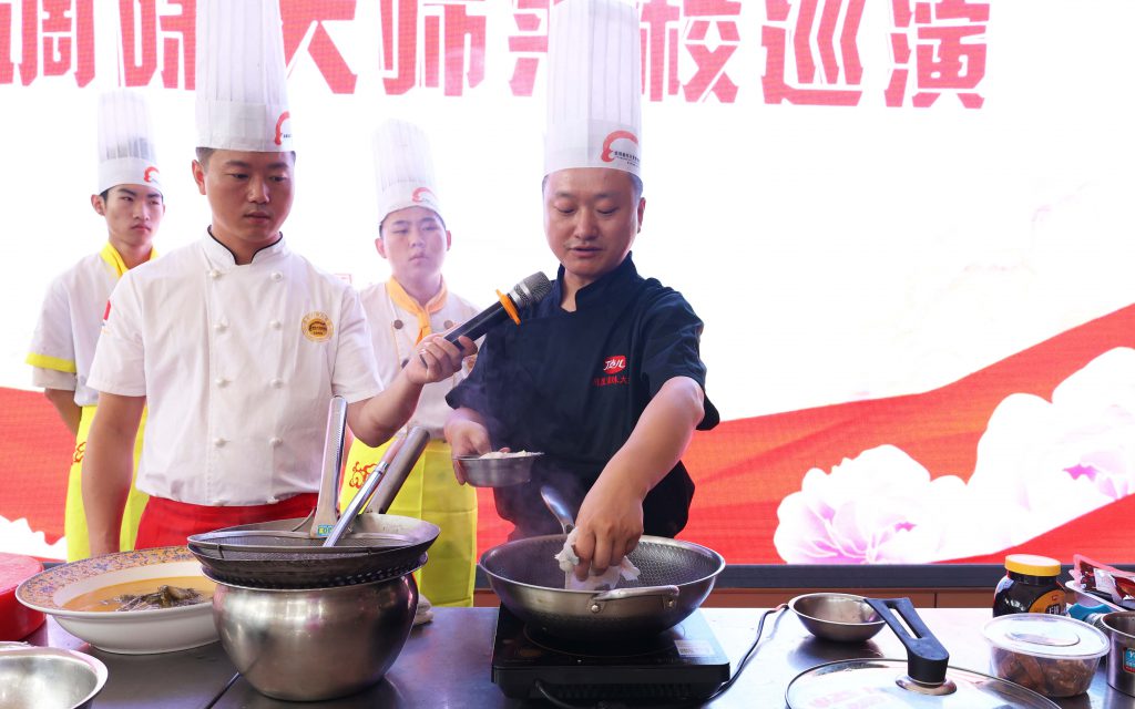 ? ? ? ?同時,陳證宇大師現(xiàn)場還邀請了學生代表上臺進行實操,為其進行現(xiàn)場實踐指導,使同學們既開眼界,又能學到丁點兒股份核心產(chǎn)品烹飪川菜的用法,讓同學們收獲滿滿!