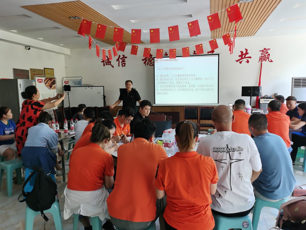 ? ? ? ?8月9日,來自丁點(diǎn)兒股份與遂寧巴味鮮的20名銷售精英齊聚遂寧召開了突擊活動(dòng)培訓(xùn)暨動(dòng)員大會(huì)。丁點(diǎn)兒股份市場(chǎng)總監(jiān)劉振平作為本次活動(dòng)的負(fù)責(zé)人組織針對(duì)丁點(diǎn)兒企業(yè)概況、新產(chǎn)品特性優(yōu)勢(shì)、促銷舉措、銷售技巧、信心鼓舞、成效考核及激勵(lì)措施等方面開展了多維度內(nèi)容培訓(xùn),為本次活動(dòng)完成既定目標(biāo)任務(wù)奠定了堅(jiān)實(shí)基礎(chǔ)。