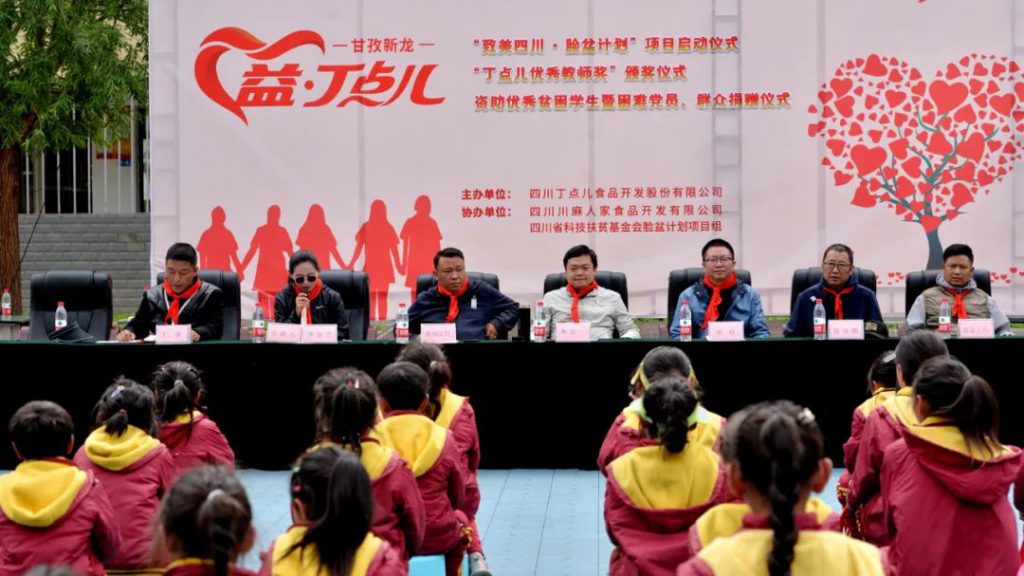 6月30日,丁點兒股份攜手四川省科技扶貧基金會臉盆計劃項目組和四川川麻人家食品開發(fā)有限公司來到色威鎮(zhèn)樂安小學,隆重舉行了“致美四川·臉盆計劃&丁點兒優(yōu)秀教師”公益活動啟動暨幫扶捐贈儀式,新龍縣縣委常委、副縣長黃如一、丁點兒股份副總張欣、色威鎮(zhèn)黨委書記嚴峰、丁點兒股份行政經(jīng)理李興益等出席了本次活動并講話。