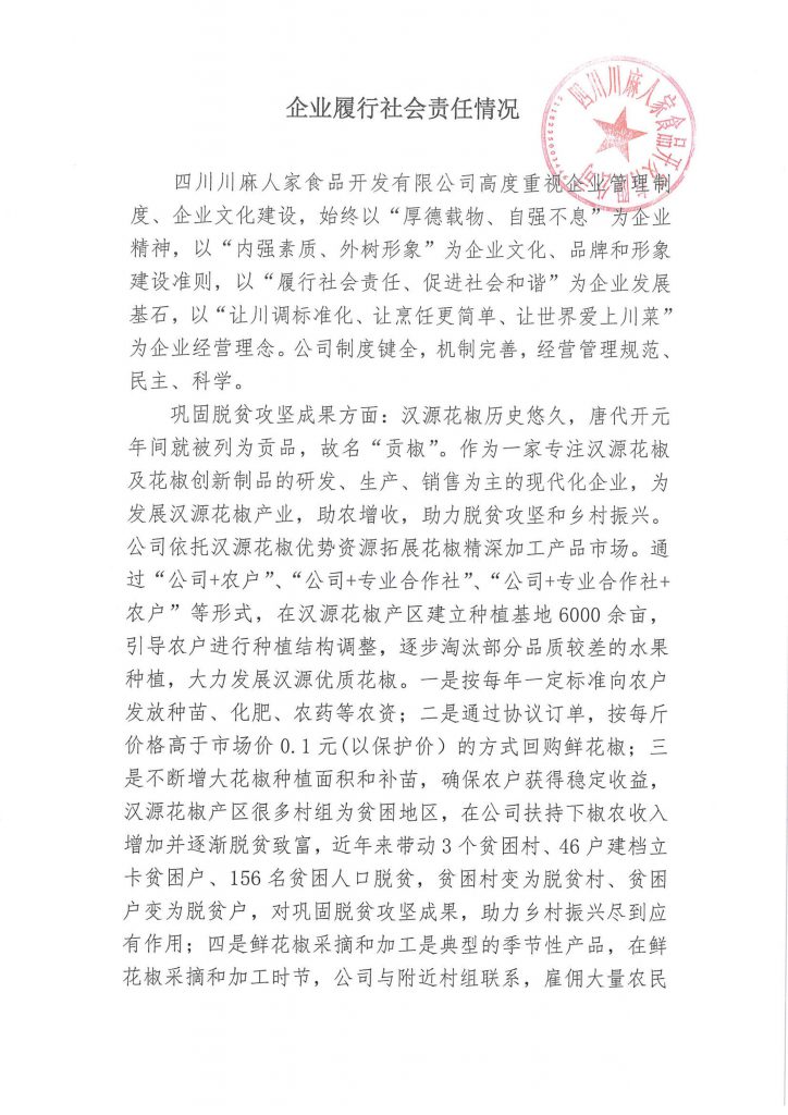 丁點(diǎn)兒股份全資子公司四川川麻人家-企業(yè)履行社會責(zé)任情況