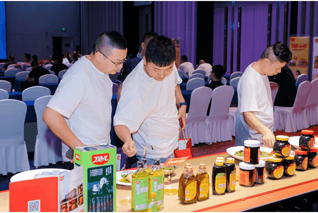 在丁點(diǎn)兒高品質(zhì)特色川調(diào)產(chǎn)品展示區(qū),椒麻雞汁、干鍋醬、麻得倒純萃花椒油等豐富的產(chǎn)品吸引了眾多參會(huì)人員駐足詢問了解。口味穩(wěn)定,快速出餐,可優(yōu)化菜品成本等產(chǎn)品優(yōu)勢,引得大家紛紛咨詢合作,用丁點(diǎn)兒青花椒麻辣醬烹飪的翡翠鮮椒雞更是獲得了品鑒人員的一致好評。