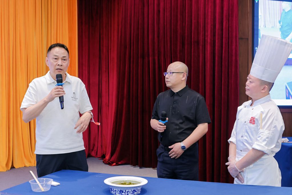 烹飪過(guò)程中,在中國(guó)烹飪大師劉全剛采訪交流下,2位總廚不僅展示了各自菜品的烹飪要點(diǎn)和菜品特色,還分享了自己的烹飪心得和技巧。著名烹飪大師肖見(jiàn)明現(xiàn)場(chǎng)品鑒點(diǎn)評(píng)到:”兩道作品既守住川菜魂,又開辟新思路,為傳統(tǒng)技藝注入現(xiàn)代活力,非常棒!值得我們新生代餐飲廚師學(xué)習(xí)!”