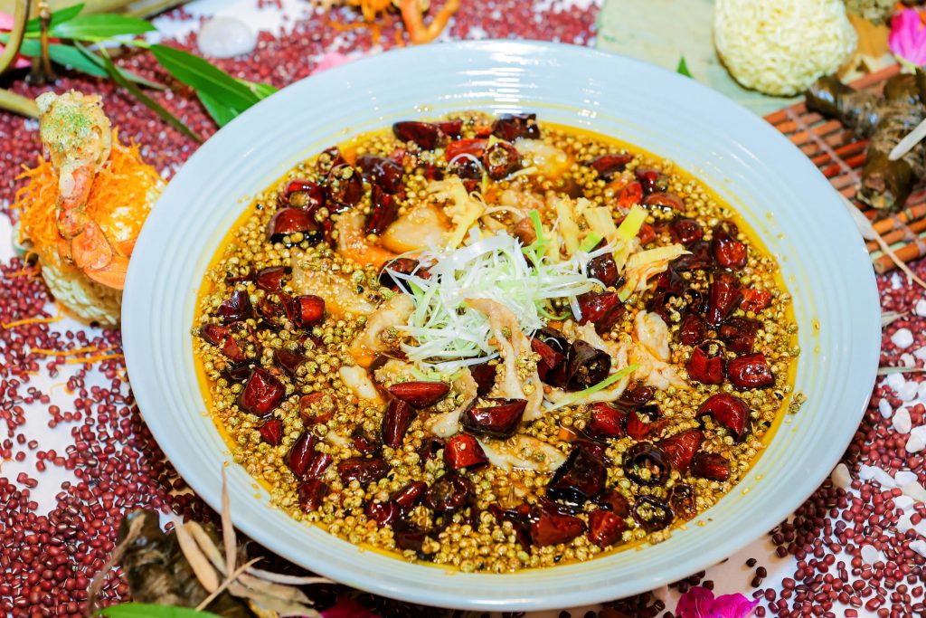 現(xiàn)場(chǎng),行政總廚李偉、王俊成現(xiàn)場(chǎng)演繹經(jīng)典川菜創(chuàng)新烹飪技法。用丁點(diǎn)兒椒麻雞汁、藤椒油、青花椒麻辣醬等高品質(zhì)特色產(chǎn)品創(chuàng)新打造的紅袍尋雙味、清幽九肚魚等特色風(fēng)味菜品,將椒麻味型展現(xiàn)得淋漓盡致,香氣溢滿整個(gè)會(huì)場(chǎng),引得與會(huì)嘉賓紛紛前來(lái)品鑒交流。