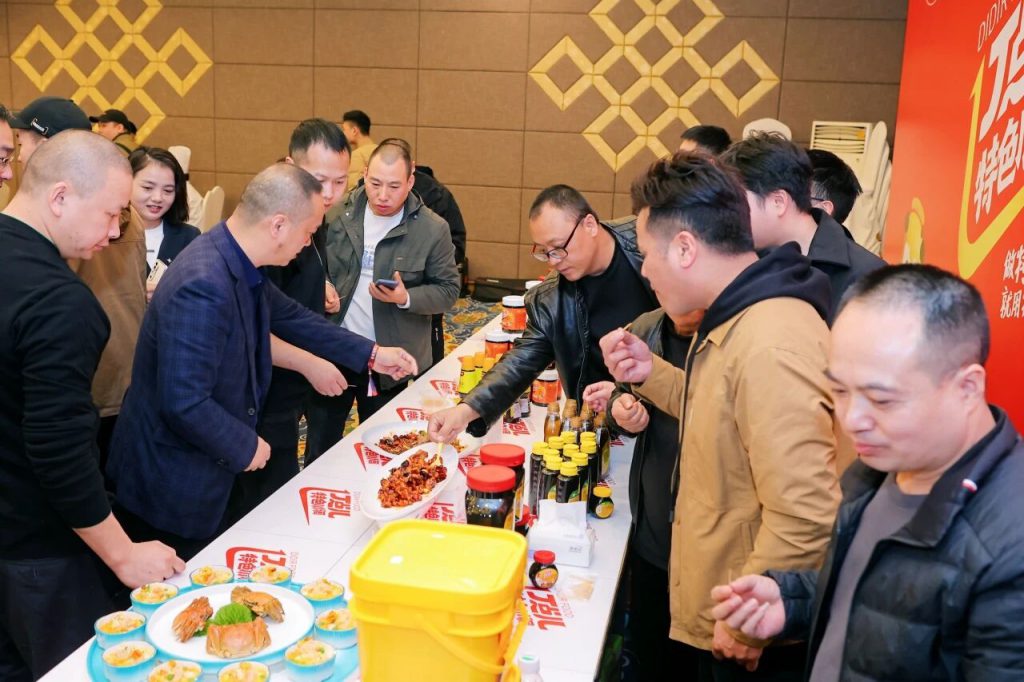 會(huì)場(chǎng)一側(cè),丁點(diǎn)兒高品質(zhì)特色川調(diào)產(chǎn)品展示區(qū)也成了全場(chǎng)焦點(diǎn)。用丁點(diǎn)兒金湯酸菜醬烹出金湯蟹粉撈脆米——酸香濃郁的湯底裹著蟹粉的鮮甜,脆米在口中“咔嚓”作響,瞬間引爆味蕾!椒香深海帶魚則外酥里嫩,麻辣中透著海味的清甜,帶有丁點(diǎn)兒干鍋醬的獨(dú)特風(fēng)味。兩道菜品色澤誘人,造型精致,引得大家紛紛打卡拍照。